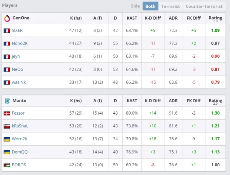 Teams Woro2k and SIXER played a match on the map Anubis, which lasted 65 rounds