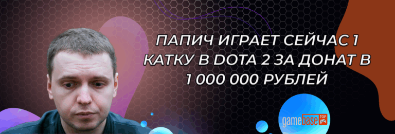 Папич играет сейчас 1 катку в Dota 2 за донат в 1 000 000 рублей